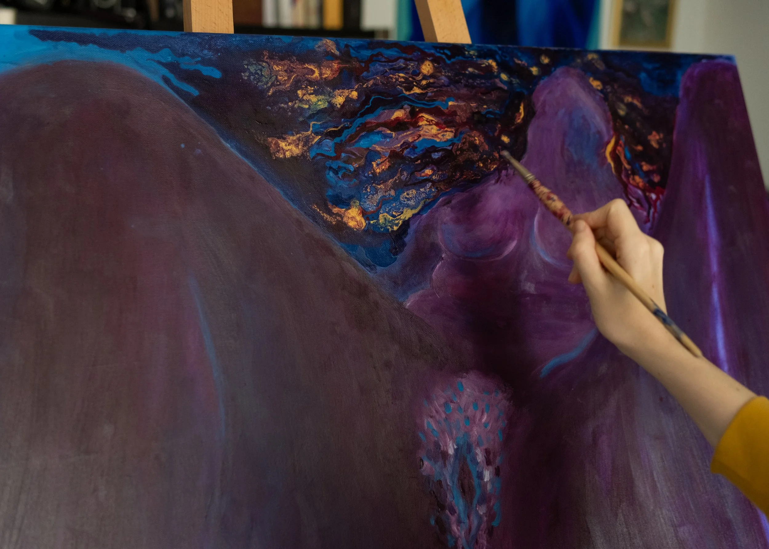 Conçu comme une mythologie personnelle, ce cycle donne forme à des états intérieurs où le vécu se transforme au contact de l'imaginaire. Nourrie par une approche féministe, Dans une approche féministe, je détourne la figure du monstre pour en faire un espace d'émancipation, où l’intensité émotionnelle devient une force de métamorphose.